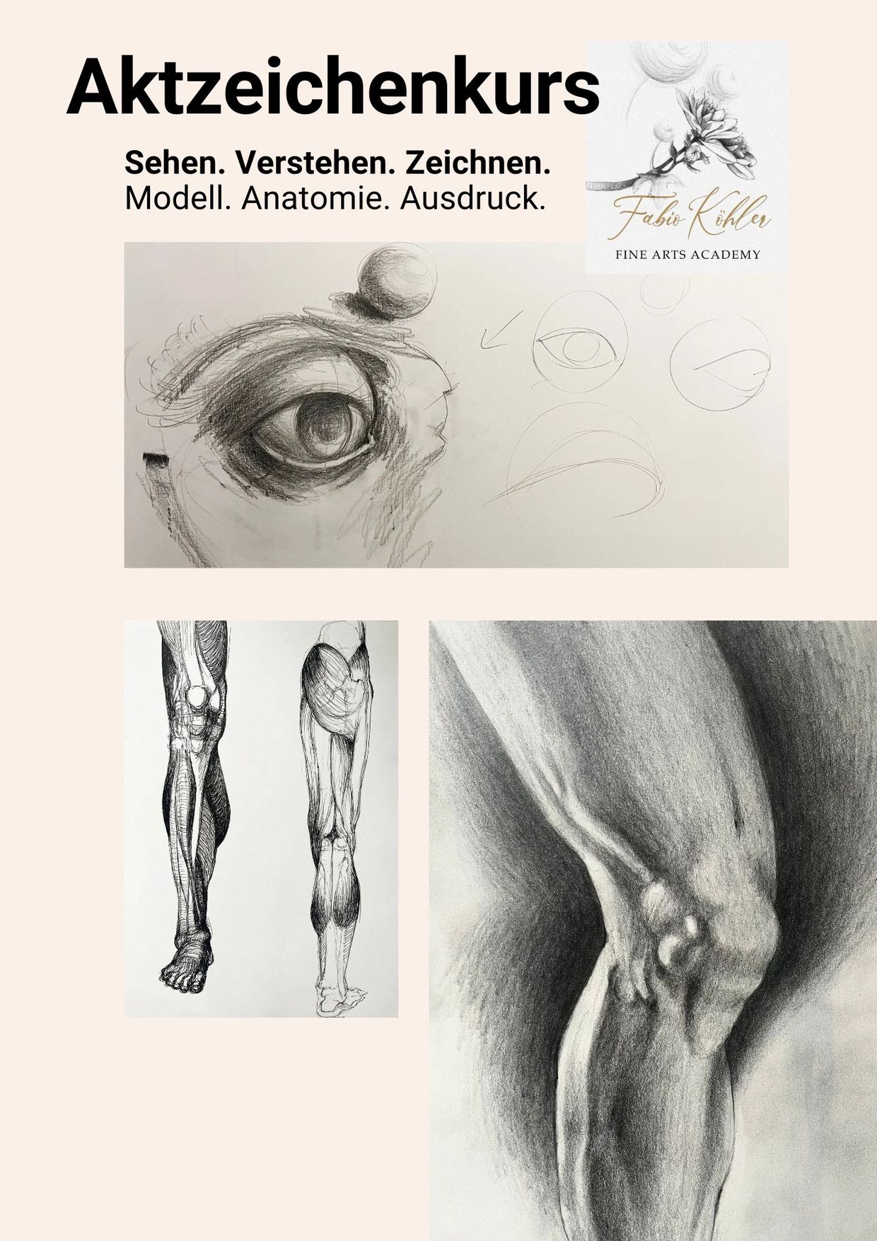 Du verbindest das Zeichnen nach Modell mit gezielter anatomischer Anleitung und lernst, Figuren lebendig darzustellen.